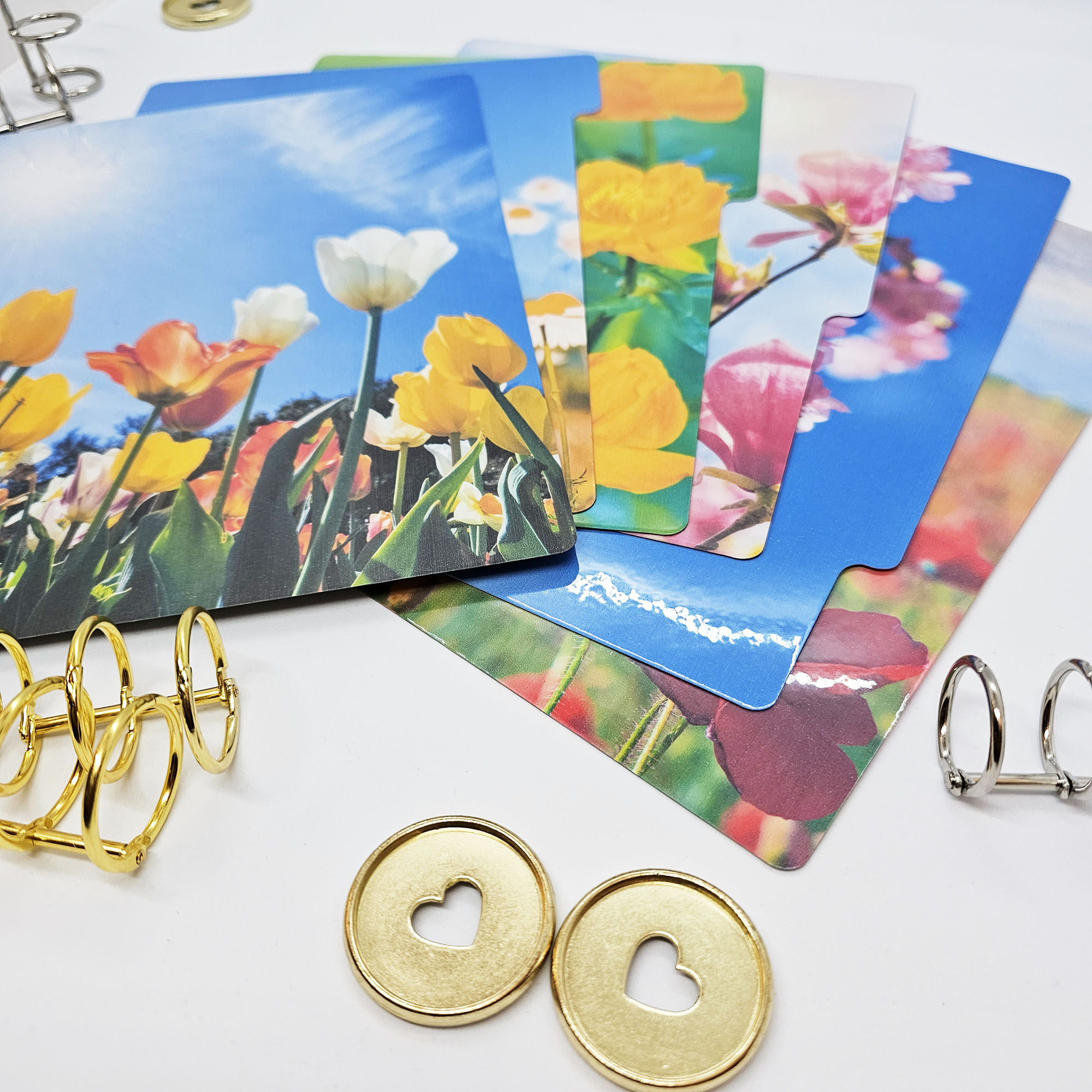 Okładka planera i pięć przekładek do wkładów planerowych w rozmiarze A5. Dwustronnie zadrukowany papier 120g/m2 folią laminacyjną 125mic.