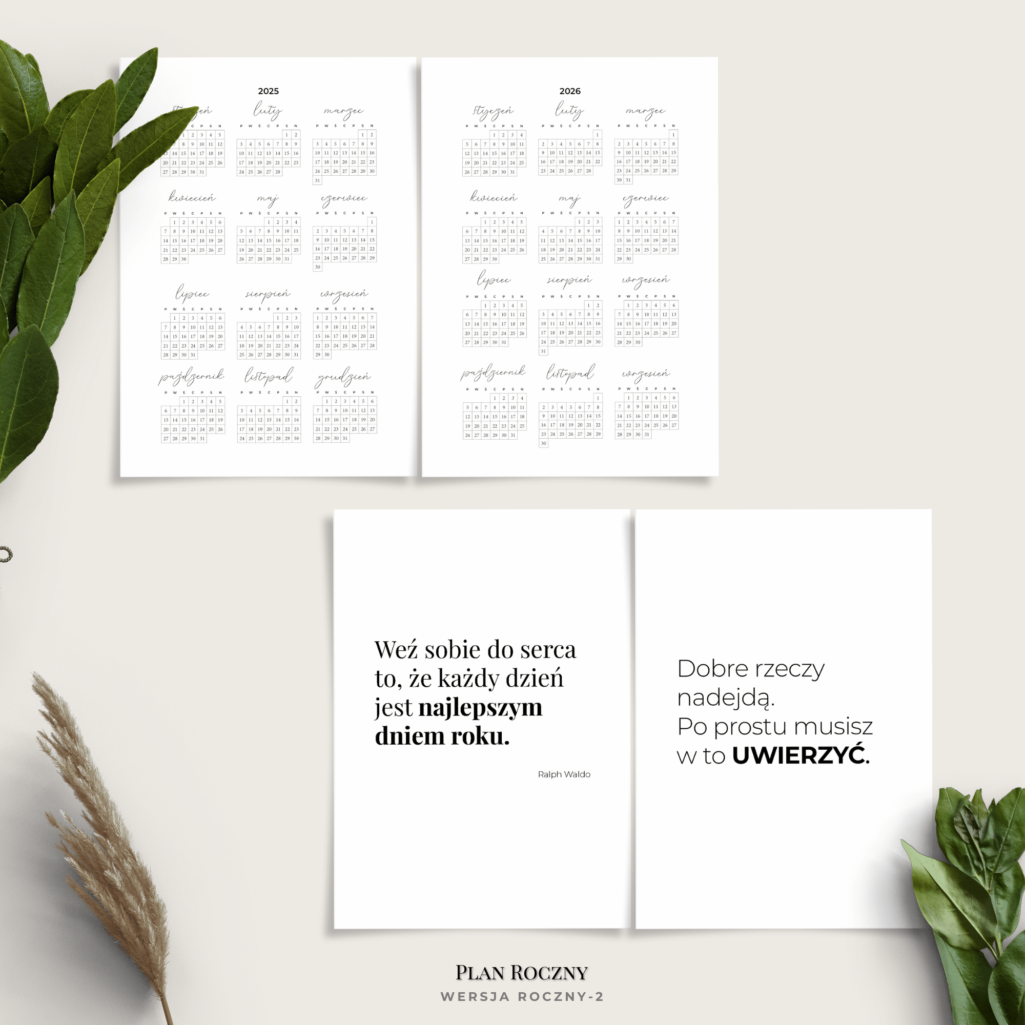 Planer roczny drukujemy w kompletach w wybranym wariancie na rok 2025 / 2026 lub niedatowany. Wybierz swoją opcję.